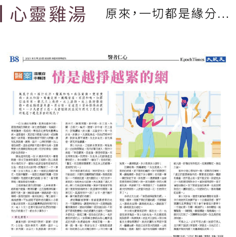 繁忙世代的我們,也許無法每天細細品讀報紙,不過,即使2~3天翻閱一次《大紀元》,每次都一定會有收穫!我想,這就是「她最可愛迷人的價值。」